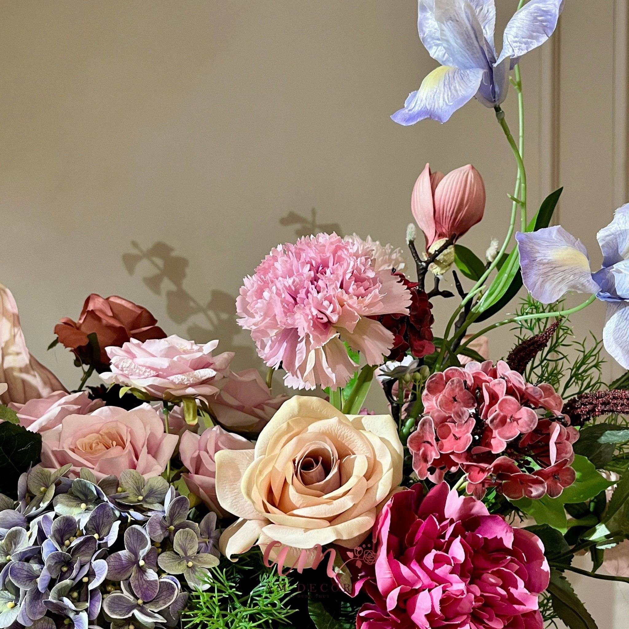Sự kết hợp tinh tế đã tạo nên một bức tranh sống động, rực rỡ mà vẫn đầy thanh lịch. Mỗi bông hoa mang một sắc thái riêng, khi hòa quyện lại trở thành bản hòa ca của sắc màu và cảm xúc.