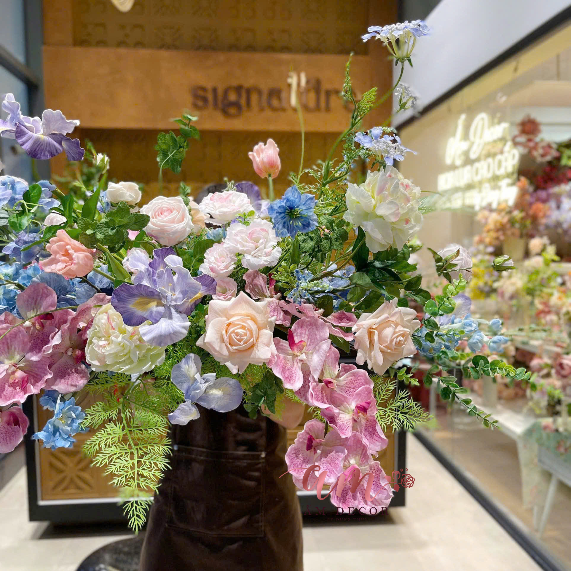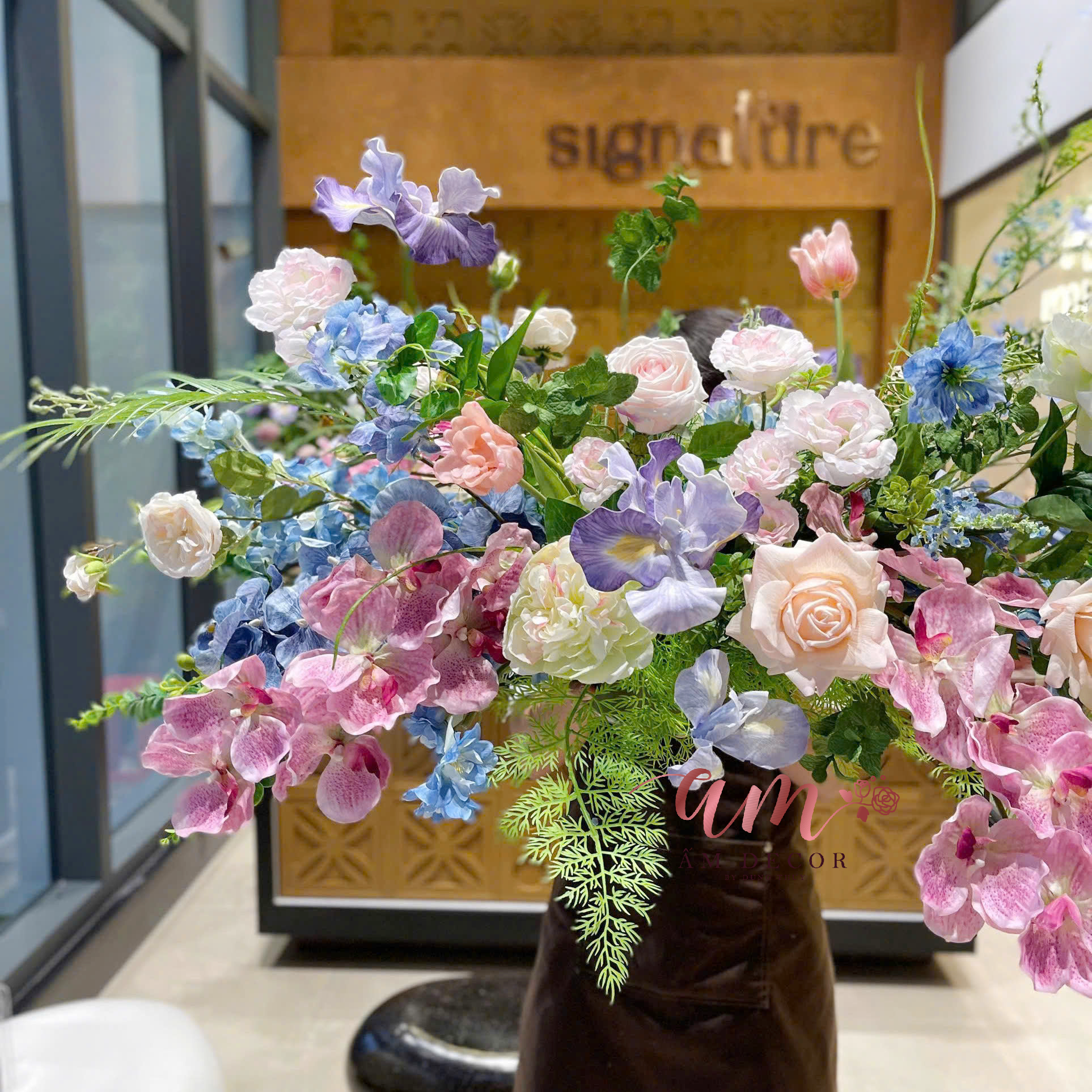 - Tone màu: Xanh Dương phối Tím Hồng